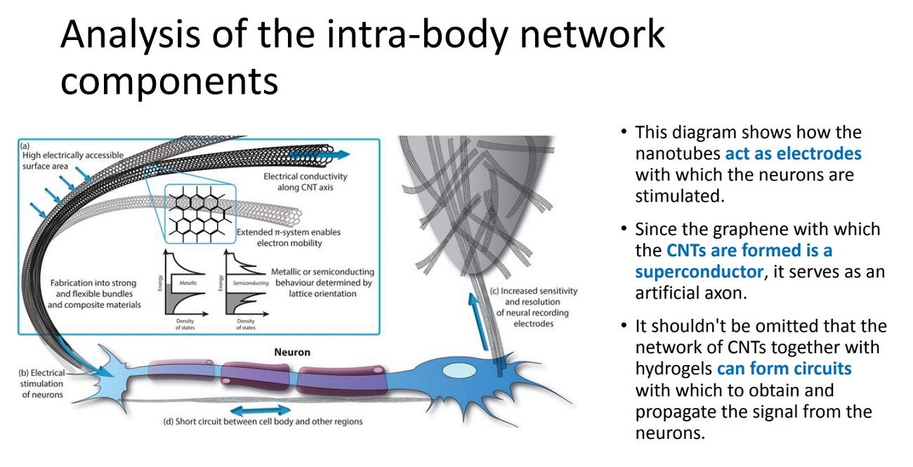 Pictured above; notice how the superconductive properties of the myelin sheathing are replaced by a simple highly conductive graphene wire, in the transhuman.