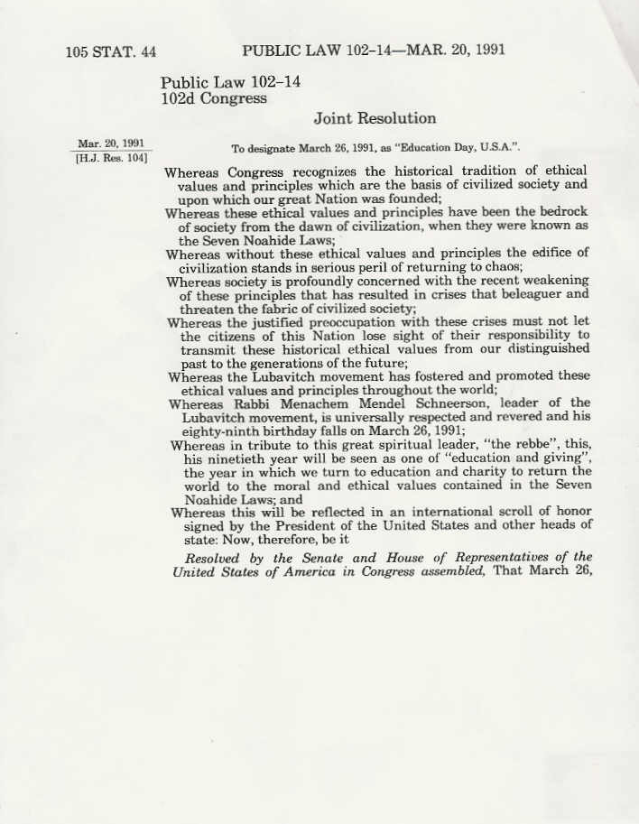 Every President since has endorsed approbation for continuing the Seven Noahide Laws through each administration, regardless of Party. The seven laws for the descendants of Noah (everybody in that interpretation) precludes worshiping idols (outside the home like Christianity or Allah/Mohammed) and the penalty is death by decapitation.